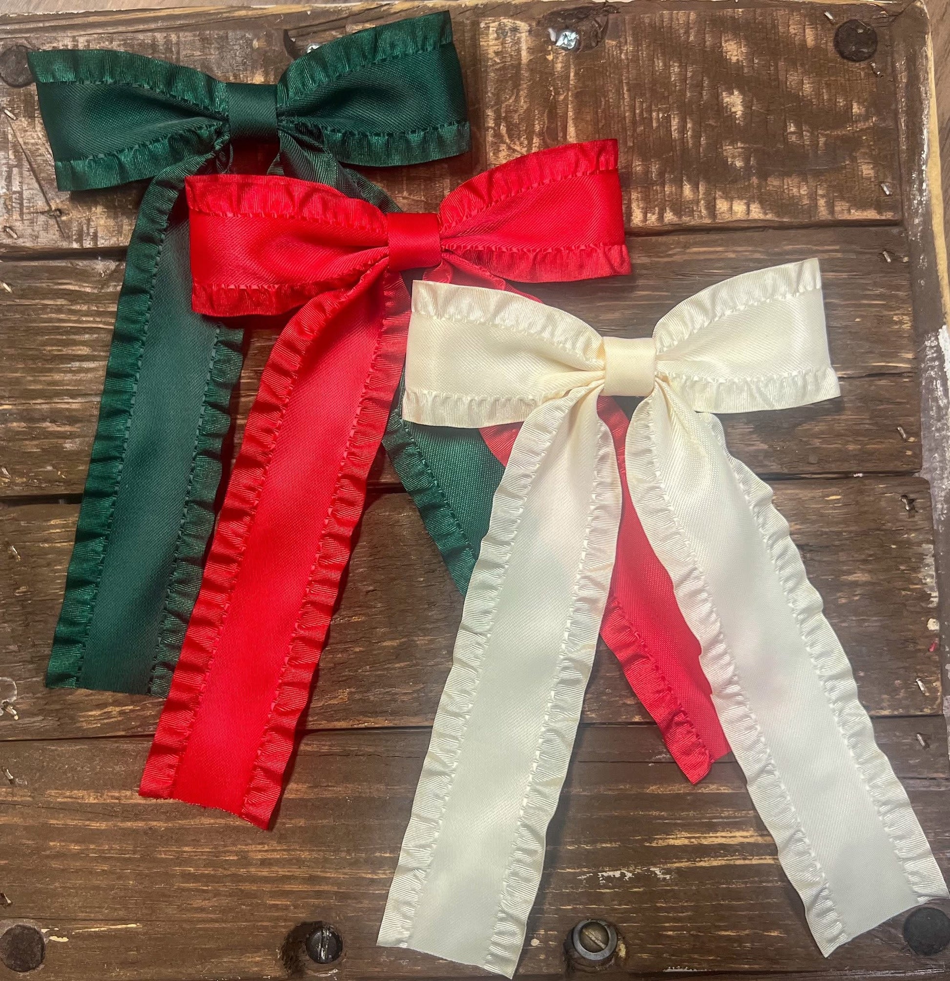 Shine bright with our newest Gemstone Ruffle Bows, inspired by the timeless beauty of precious stones. Each bow is finished with soft ruffled edges for a touch of elegance and everyday wearability. Whether you’re dressing up for the holidays, celebrating a special moment, or just want to add a little sparkle to your day, these bows are a must-have in your collection.