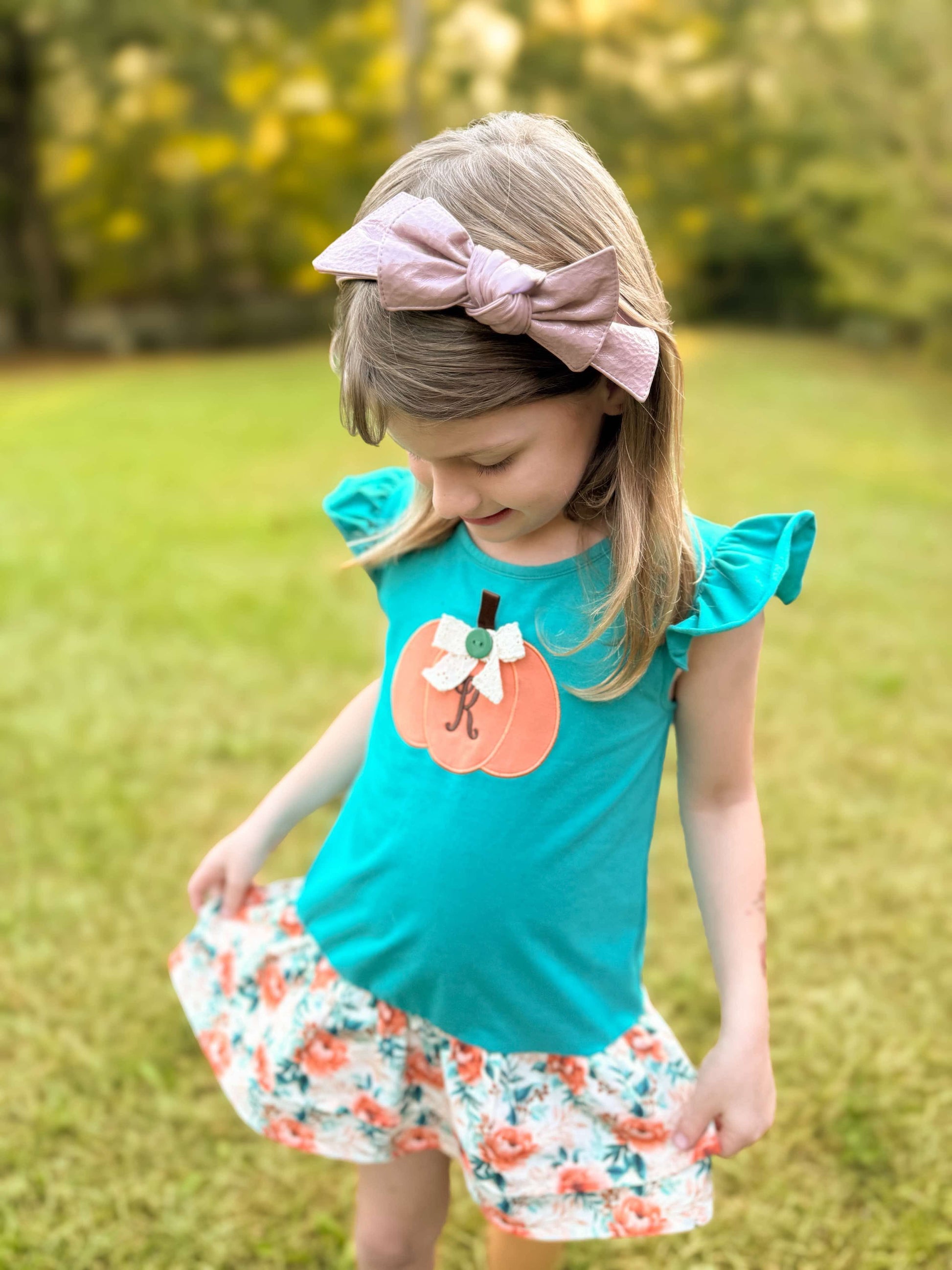 Peaches & Bluebonnet Bows